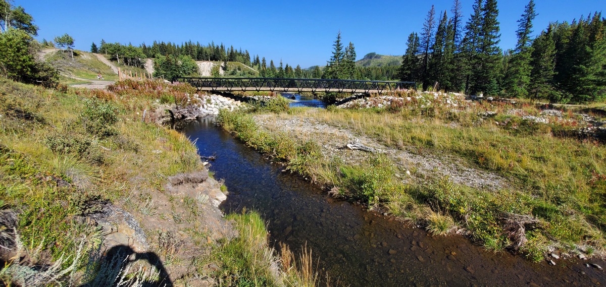 In September 2016 we undertook a bioengineering project in collaboration with the Alberta Government's Backcountry Trails Flood Rehabilitation Team (BTFR) at the location of a new bridge on Meadow Creek.