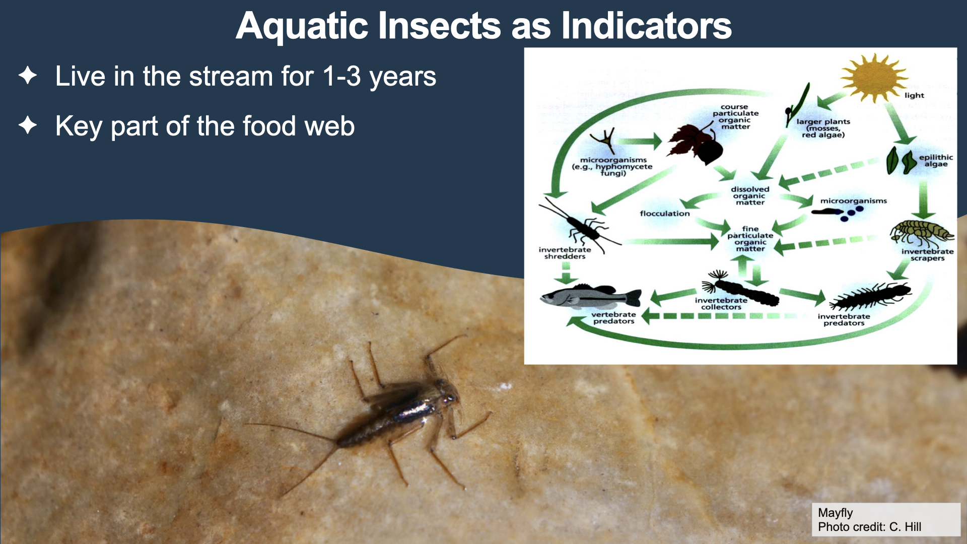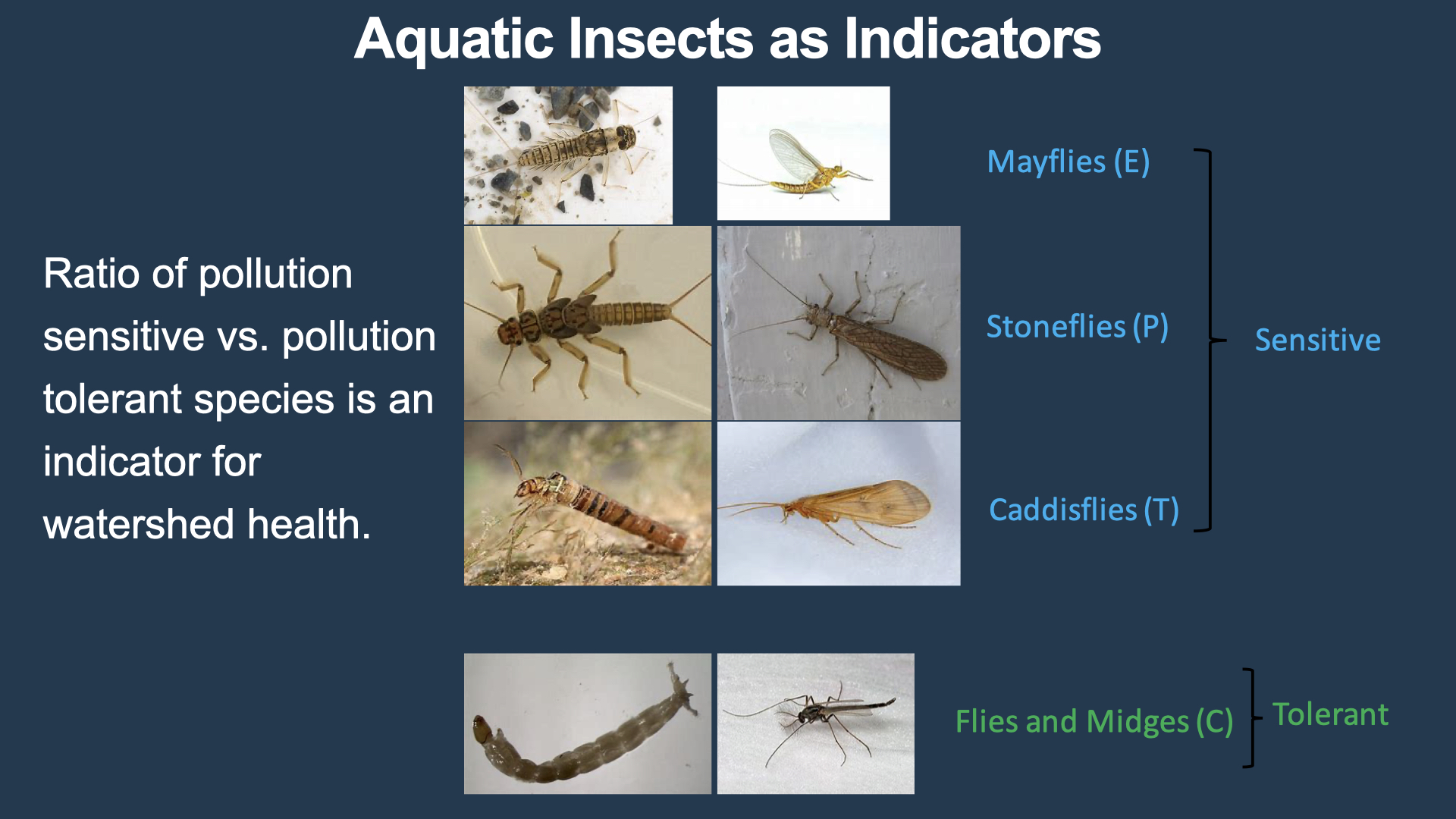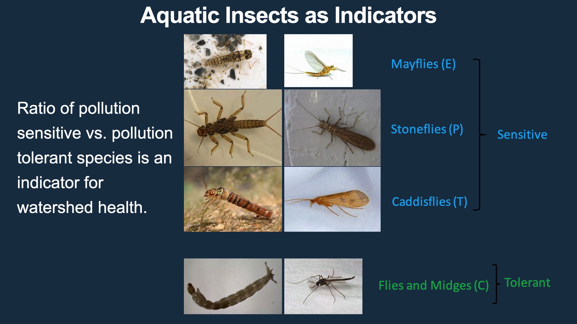 “Perform aquatic invertebrate sampling (as per the Canadian Aquatic Biomonitoring Network protocols) at sites within the Ghost Watershed, and use Ephemeroptera, Plecoptera and Trichoptera (EPT) ratios as a proxy for water quality.”